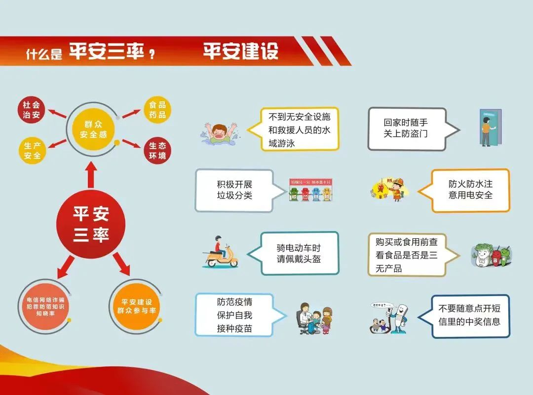 1、防盗、防抢、防骗、防火、防事故,积极做好自身防范,确保自身及家庭平安。