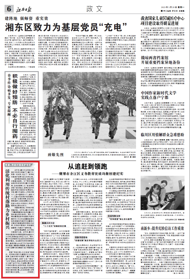 今天,江西日报报道我市经验做法:活化利用传统村落助力乡村振兴。